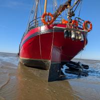 Wir haben Segel gesetzt, wir haben den Anker eingeholt, wir haben die Schwerter des Plattbodenschiffes runtergelassen und wieder hochgeholt, je nach Bedarf. Die Crew hat uns perfekt angeleitet. Von Bremerhaven aus sind wir in Richtung Fedderwardersiel gestartet. Auf dem Weg dorthin haben wir in einem dafür freigegeben Pril den Anker geworfen und gewartet bis das Wasser weg war. Wir haben uns trocken fallen lassen, sind dann von Bord und zu Fuß im Watt um das Schiff herum spaziert. Was ein wunderschönes Erlebnis. Bei bestem Wetter konnten wir die Auszeit genießen. Bei´m Warten auf das rückkehrende Wasser konnten wir die Seele an Deck baumeln lassen. Aufgrund zunehmenden Windes haben wir im Hafen von Fedderwardersiel übernachtet. Dort sind wir Sonntag früh wieder Richtung Bremerhaven gestartet. Schon kurz nach dem Start konnten wir Segel setzen.Wir danken für die vielen spannenden und aufregenden Momente. Wir werden alle noch viele Wochen von diesem tollen Erlebnis zehren können!